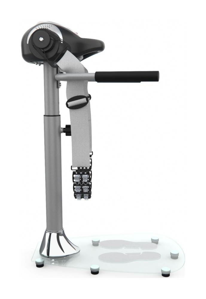 Удобство конструкции Массажёр имеет компактную и надёжную конструкцию. В качестве основания использована гальваническая труба диаметром 76 мм и толщиной 1,5 мм. Платформа выполнена из закалённого стекла. Максимально допустимый вес пользователя — 110 кг. В комплектацию входят 2 массажных пояса, которые крепятся к передней консоли. Для удобства и безопасности предусмотрены два поручня по бокам.